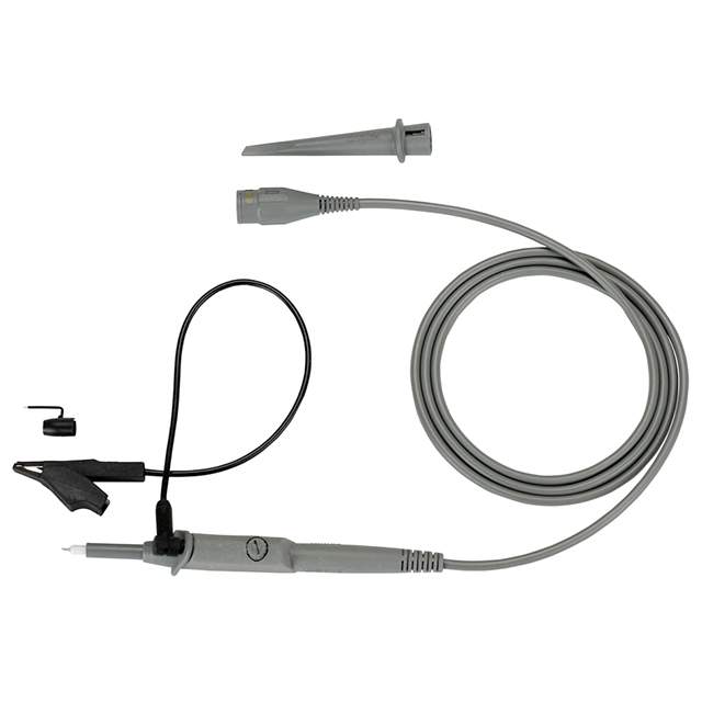 Inniheldur Adapter, Sprung Hook, Tip nákvæm lýsing 10:1 Passive 250MHz 48.000" (1219.20mm) Gray Oscilloscope Probe Test Lead CAT II 1000V, CAT III 600V