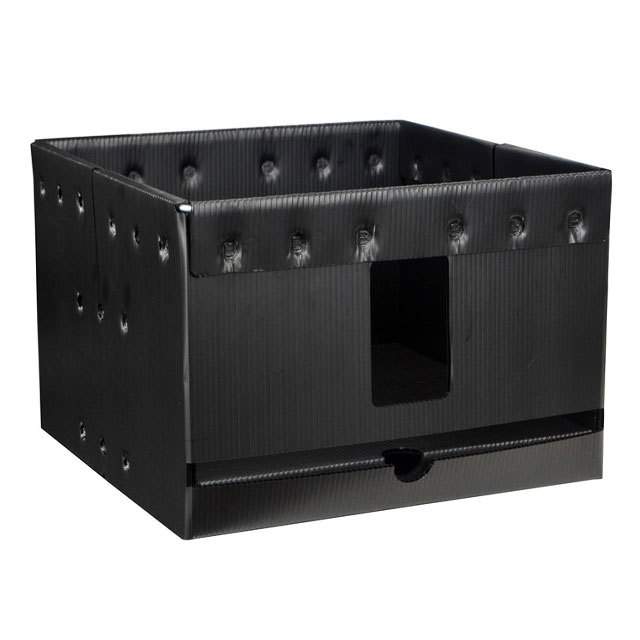 Lögun Chemical and Moisture Resistant, Conductive, Stackable, Viewing Slot, Wire Frame Stærð - Alls 13.31" L x 13.31" W x 9.38" H (338.1mm x 338.1mm x 238.3mm)