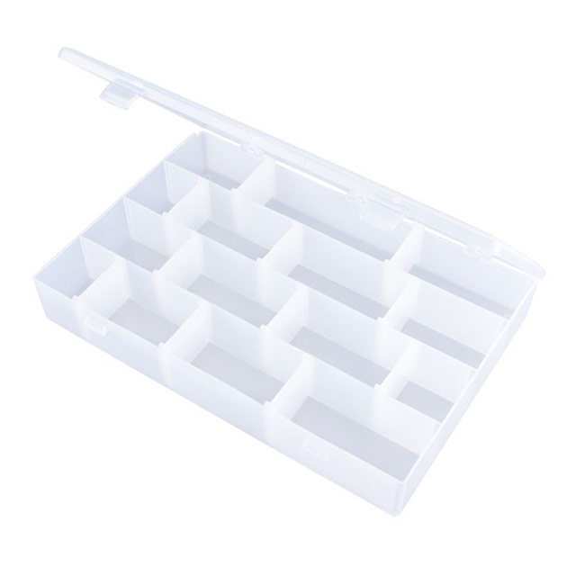 Lögun Compartments/Drawers - 4 nákvæm lýsing Component Storage Plastic, Polypropylene Clear Hinged Door, Lid 13.125" L x 8.875" W (333.38mm x 225.43mm) X 1.938" (49.23mm)