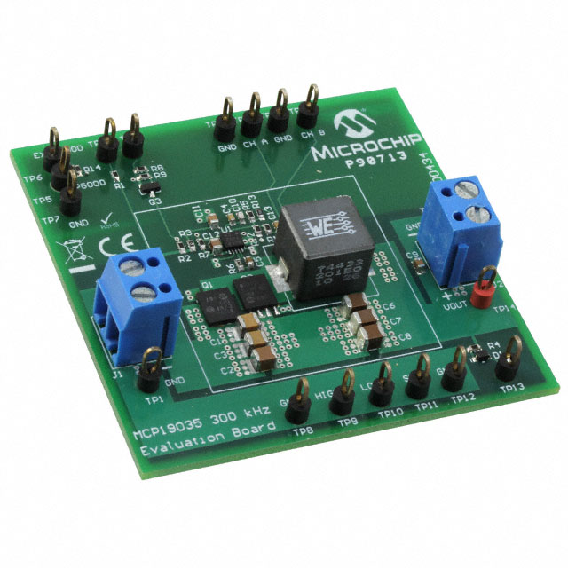 Tíðni - Rofi 300kHz nákvæm lýsing MCP19035 - DC/DC, Step Down 1, Non-Isolated Outputs Evaluation Board